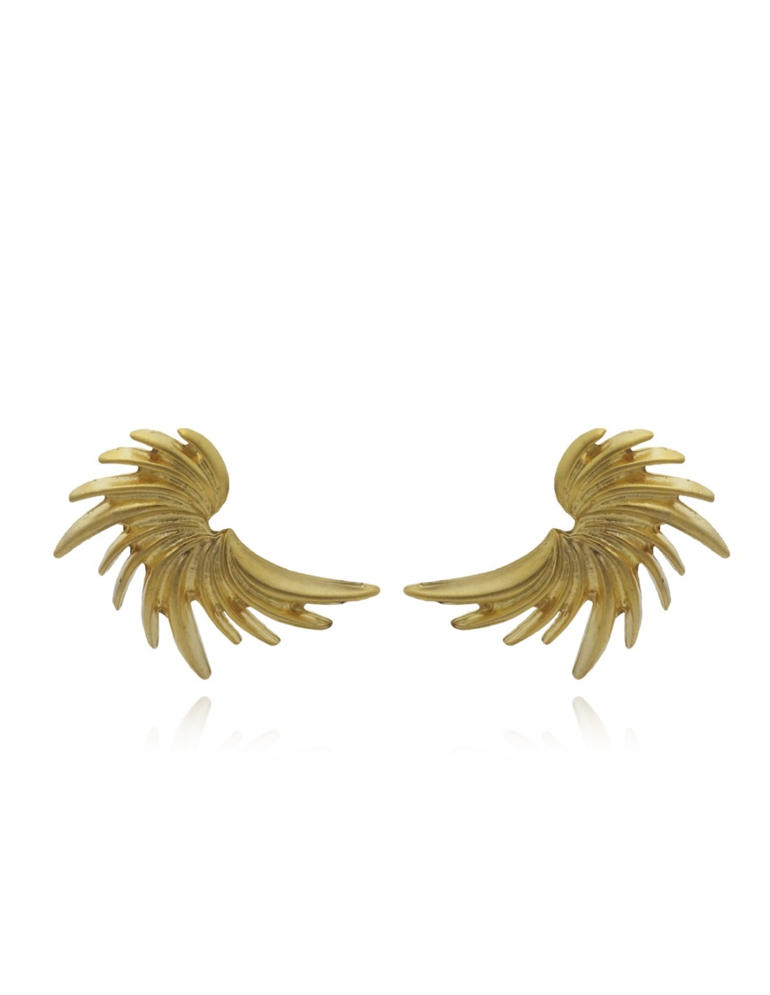 Originalidad y simpleza. Pendiente de placa metálica bañada en oro de 18 k, de forma desigual de 4 cm. Cierre hipoalergénico a presión. Muy ligero y deslumbrante.