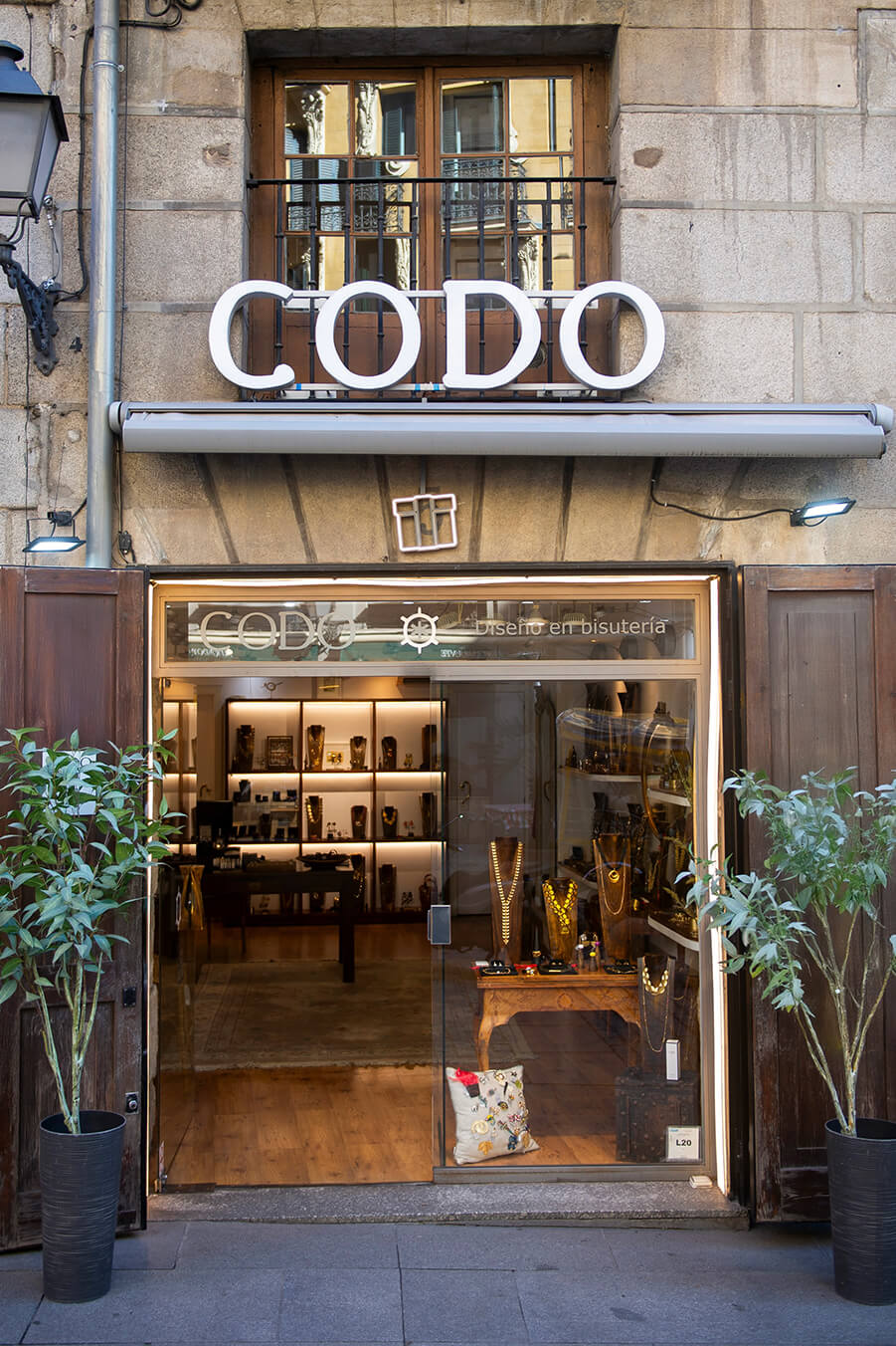 CODO MADRID es una empresa familiar dedicada a la producción y venta de bisutería artesanal y complementos en cinco tiendas situadas en el centro histórico de Madrid. Vendemos y también diseñamos collares, anillos, pulseras, pendientes, broches... y otros complementos fabricados a mano con los mejores materiales: Plata, oro, piedras minerales, cristales, acero o zamak, cueros, antes y sedas.
